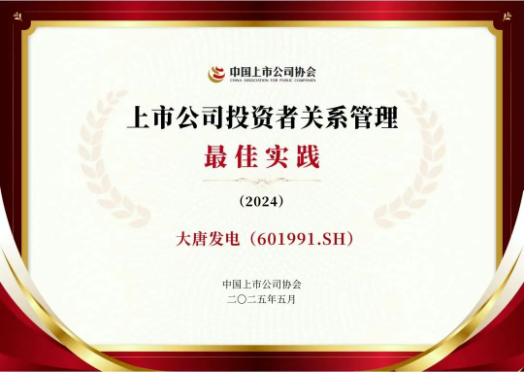 2025年,大唐國際獲評“上市公司投資者關系管理最佳實踐”。所屬托克托發電公司“北疆綠電亮北京”黨建品牌獲評“2024年度電力行業黨建影響力企業典型”稱號;保定供熱公司“暖·和到家”服務品牌入選“中國品牌優秀典型案例”。