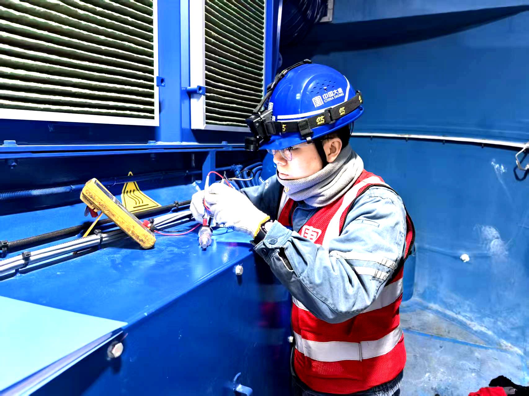 機(jī)艙蓋板剛掀開一道縫,凜冽的寒風(fēng)就像無數(shù)冰粒砸在臉上。他下意識(shí)側(cè)過身用胳膊護(hù)住口鼻,借著風(fēng)勢(shì)稍緩的瞬間猛地推開蓋板。頂著呼嘯的狂風(fēng),他順著機(jī)艙內(nèi)部爬梯穩(wěn)步挪到控制柜旁,迅速?gòu)墓ぞ甙刑统鋈f用表,“停電—驗(yàn)電—掛牌”整套安全流程一氣呵成,動(dòng)作干脆利落,沒有絲毫拖泥帶水。