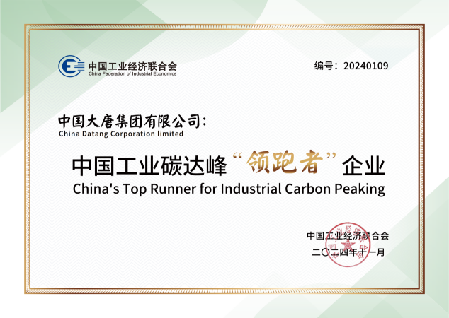 本網訊 近日,中國工業經濟聯合會在第三屆中國工業碳達峰論壇上發布了2024中國工業碳達峰“領跑者”企業名單。中國大唐以綠色低碳轉型方面的卓越表現成為2024中國工業碳達峰“領跑者”企業。