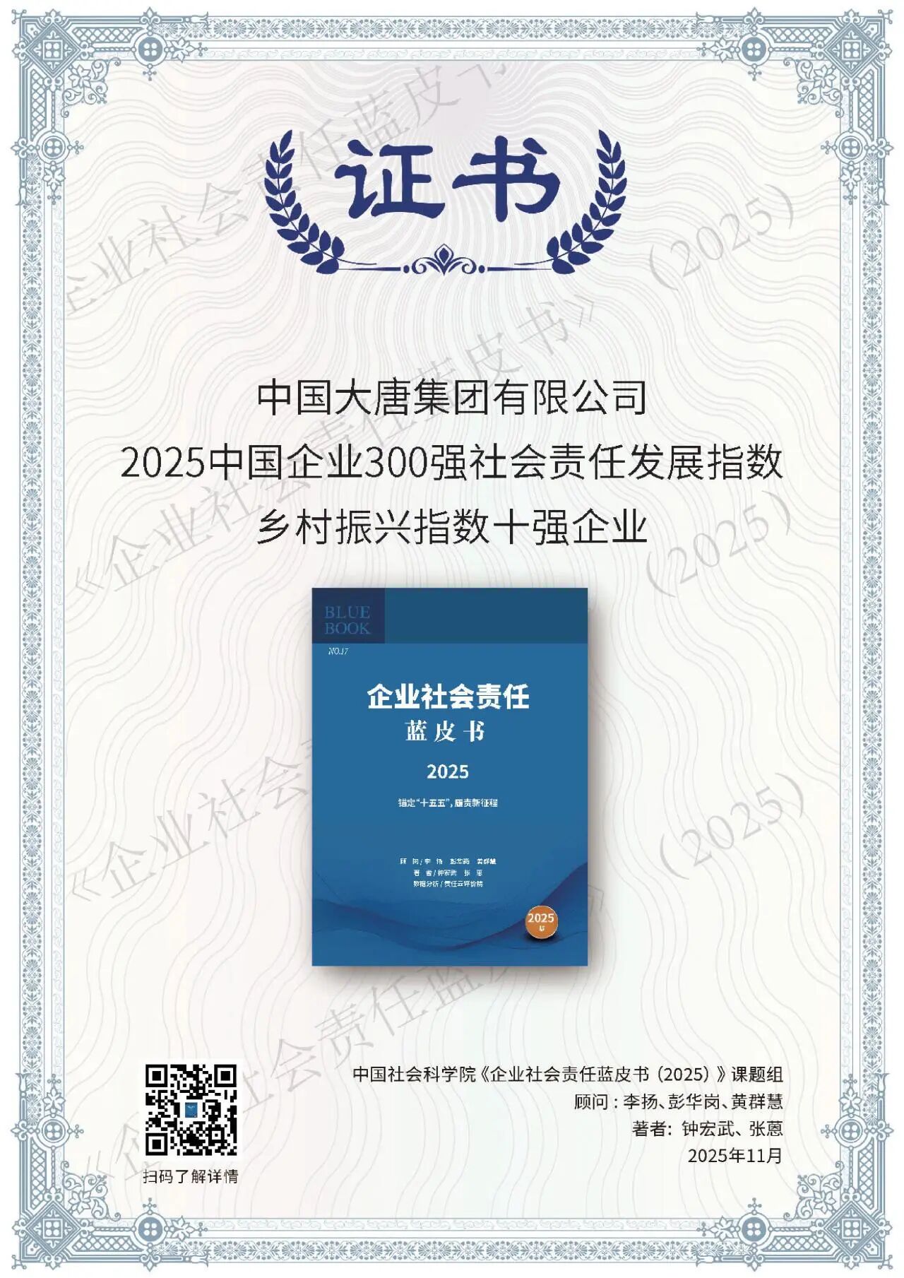 11月20日至21日,“錨定‘十五五’,履責新征程——ESG中國·第八屆北京責任展”在北京成功舉行。活動期間,正式發布《企業社會責任藍皮書(2025)》,舉辦“責任之夜——責任鯨牛獎”頒獎典禮,召開社會責任報告峰會會議。中國大唐斬獲六個獎項,一個優秀案例入選《中國企業供應鏈ESG藍皮書》。