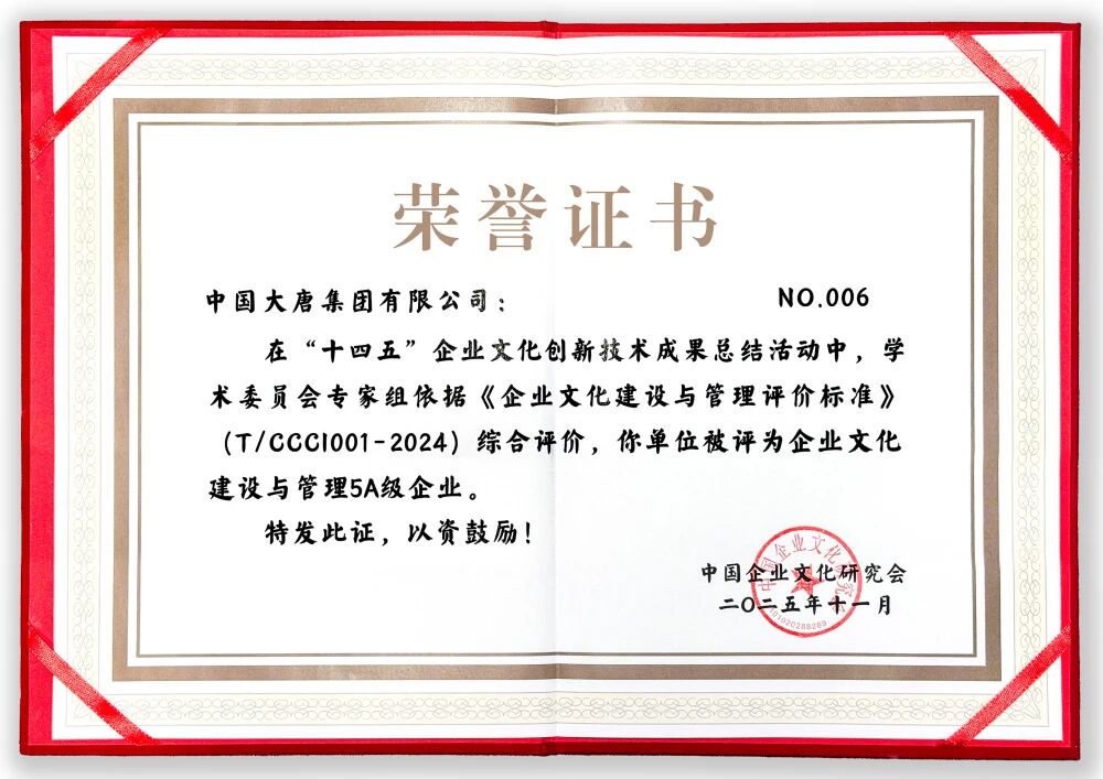 中國大唐獲評企業(yè)文化建設與管理5A級企業(yè),大唐國際發(fā)電股份有限公司和中國大唐集團海外投資有限公司獲評4A級企業(yè)。