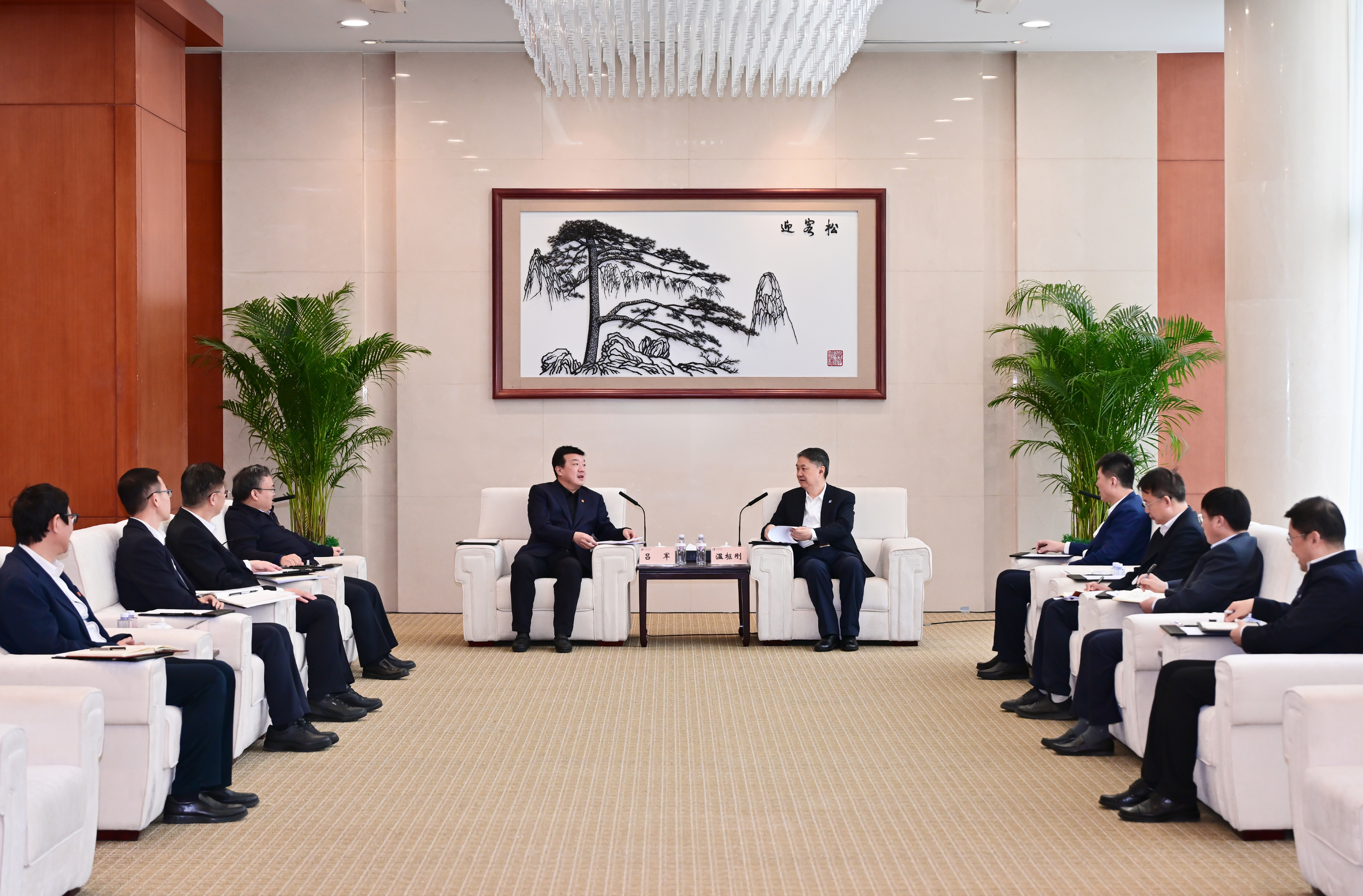 本網訊 3月13日,中國大唐集團有限公司黨組書記、董事長呂軍率隊訪問中國華能集團有限公司,與中國華能董事長、黨組書記溫樞剛會談。