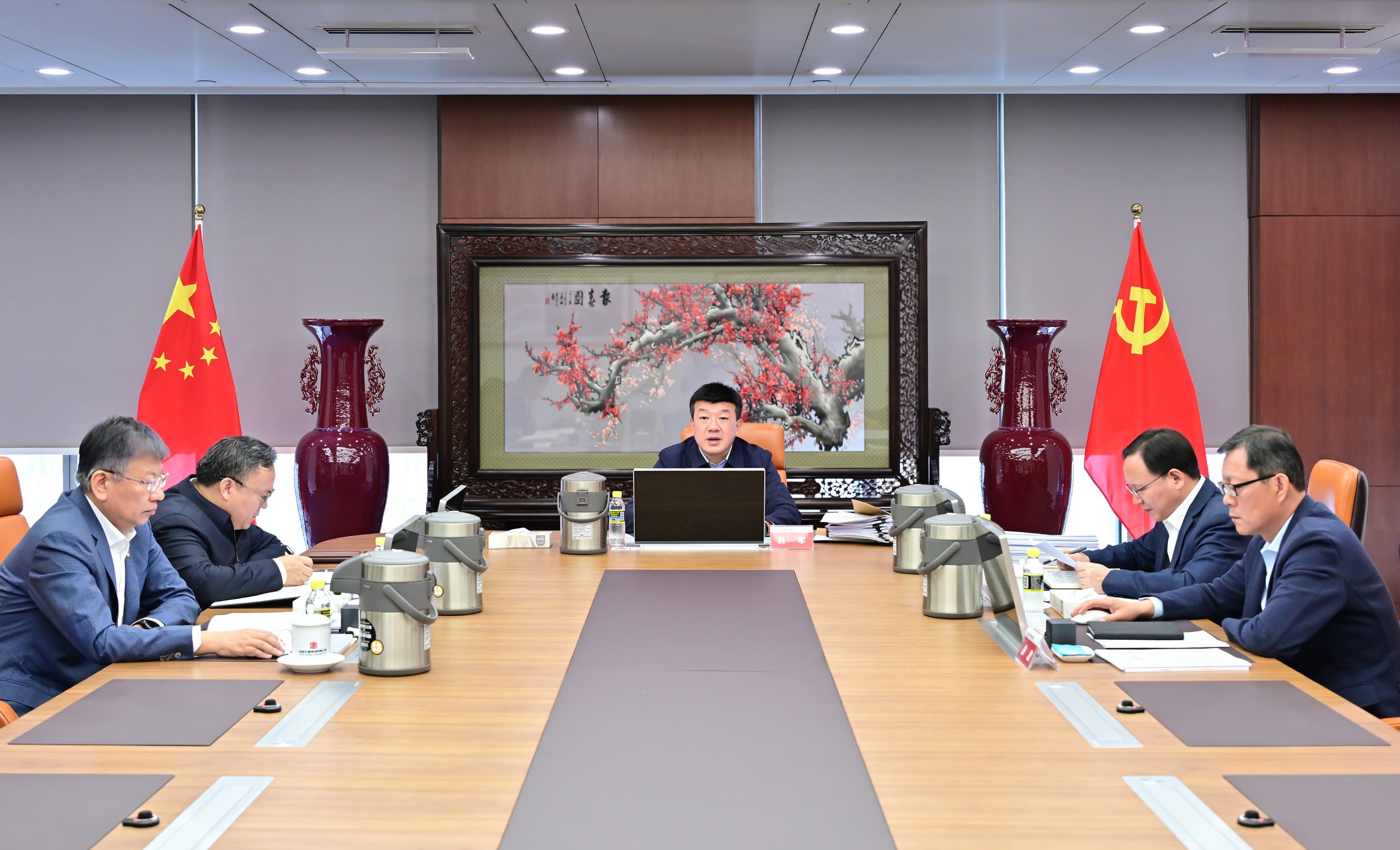 本網訊 4月11日,中國大唐集團有限公司黨組書記、董事長呂軍主持召開黨組會議,傳達學習習近平總書記重要講話、重要文章、重要論述精神,研究貫徹落實措施。集團公司領導張傳江、余波、曲波、王海騰參加會議。