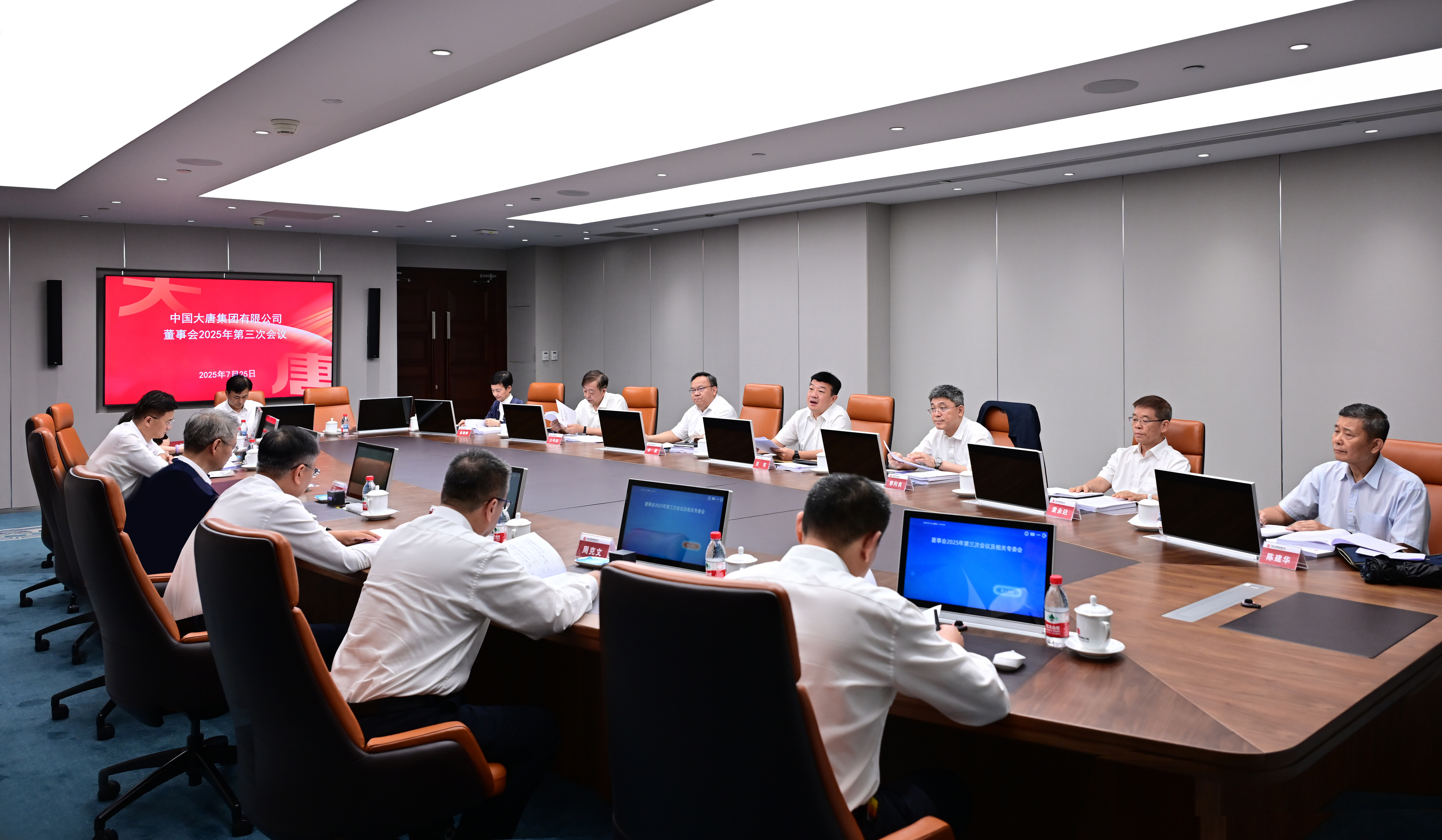 本網訊 7月25日,中國大唐集團有限公司召開董事會2025年第三次會議。集團公司董事長、黨組書記呂軍主持會議并講話,董事、總經理、黨組副書記李向良,董事、黨組副書記余波,外部董事黃永達、王守東、陳建華、段湘暉參加會議。
