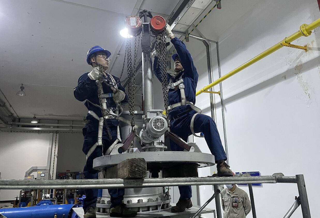 2021年11月,在2號機組自主檢修中,機械班技術(shù)員、專業(yè)技師陳文升負(fù)責(zé)技術(shù)供水系統(tǒng)主干路幾臺濾水器檢修維保工作。檢修工作中,陳文升發(fā)現(xiàn)存在細(xì)螺紋受力超負(fù)荷導(dǎo)致濾水器頂蓋滑落風(fēng)險隱患等問題,便帶領(lǐng)工作班成員李小剛、夏中帥等人仔細(xì)分析受力情況,多次繪圖試驗,利用廢棄的螺桿、鐵板制作出起吊專用工具,改進施工工藝方法,在不搭設(shè)腳手架的情況下,安全快速完成濾水器頂蓋起吊工作,收到人力和工期減少一半、根除頂蓋滑落隱患、減少計劃性項目改造費用的實效。