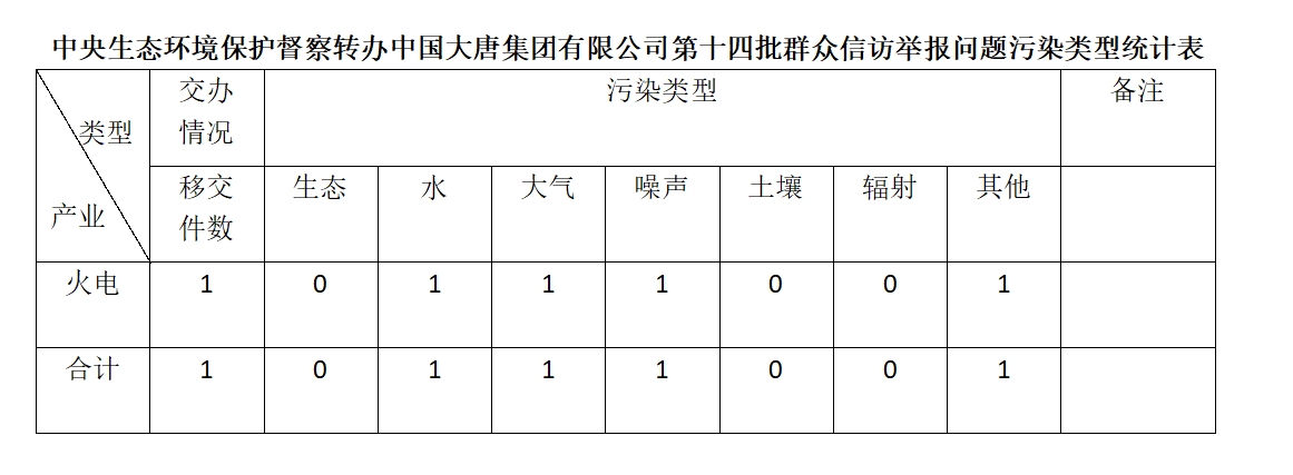 2025年6月20日,中央第七生態(tài)環(huán)境保護(hù)督察組向中國(guó)大唐集團(tuán)有限公司移交第十四批群眾信訪舉報(bào)件,共計(jì)1件,為來電舉報(bào),涉及水問題1個(gè)、大氣問題1個(gè)、噪聲問題1個(gè)、其他問題1個(gè)。所有舉報(bào)件辦理工作已第一時(shí)間進(jìn)入調(diào)查核實(shí)辦理程序,辦理情況將按照相關(guān)要求反饋督察組,并及時(shí)向社會(huì)公開。