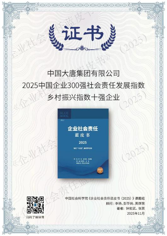 China Datang garnered six awards at the ESG China·the 8th Beijing Responsibility Exhibition?from November 20 to 21, 2025, with one outstanding practice case included?in the 2025 Blue Book on ESG in Chinese Corporate Supply Chains.
